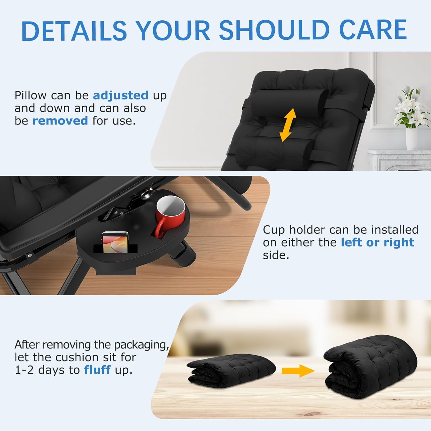 The upgraded aluminum alloy latch allows for easy adjustment from 90¡ã to 170¡ã. The 8mm deep groove firmly locks the lounge chair to prevent accidental loosening. The chair can be 20 inches above the ground, achieving true zero gravity.