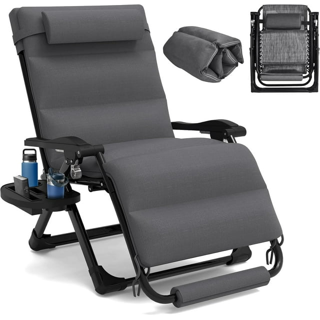 Suteck Oversized Zero Gravity Chairs, XL Anti Gravity Chair, Folding Lounge Recliner, Reclining Patio Chair for Lawn Backyard w/Washable Cushion Cover, Cup Holder, Support 350lbs, Gray