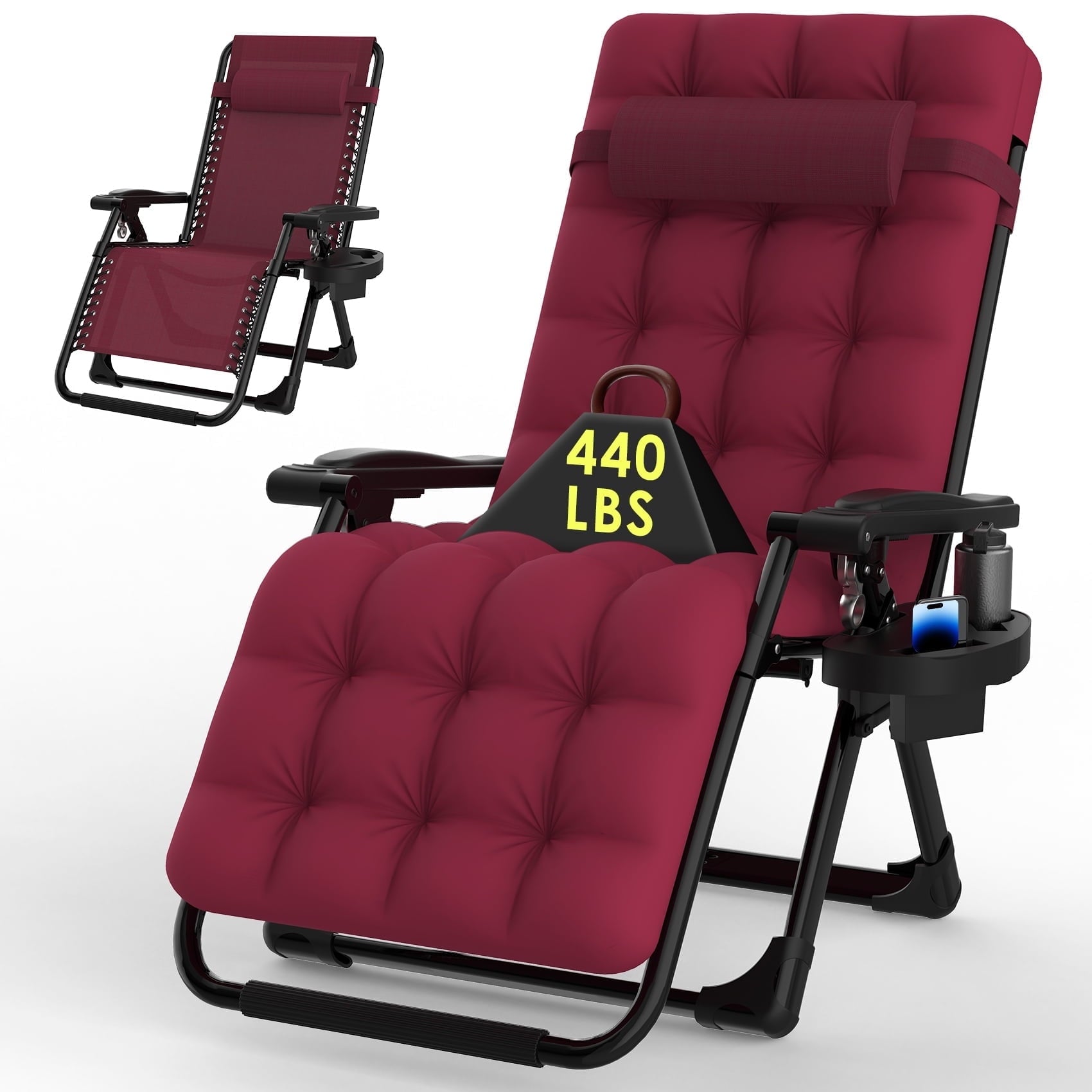 Suteck Zero Gravity Chair, Reclining Camping Lounge Chair w/Removable Cushion, Upgraded Lock and Cup Holder, Reclining Patio Chairs for Indoor and Outdoor Claret